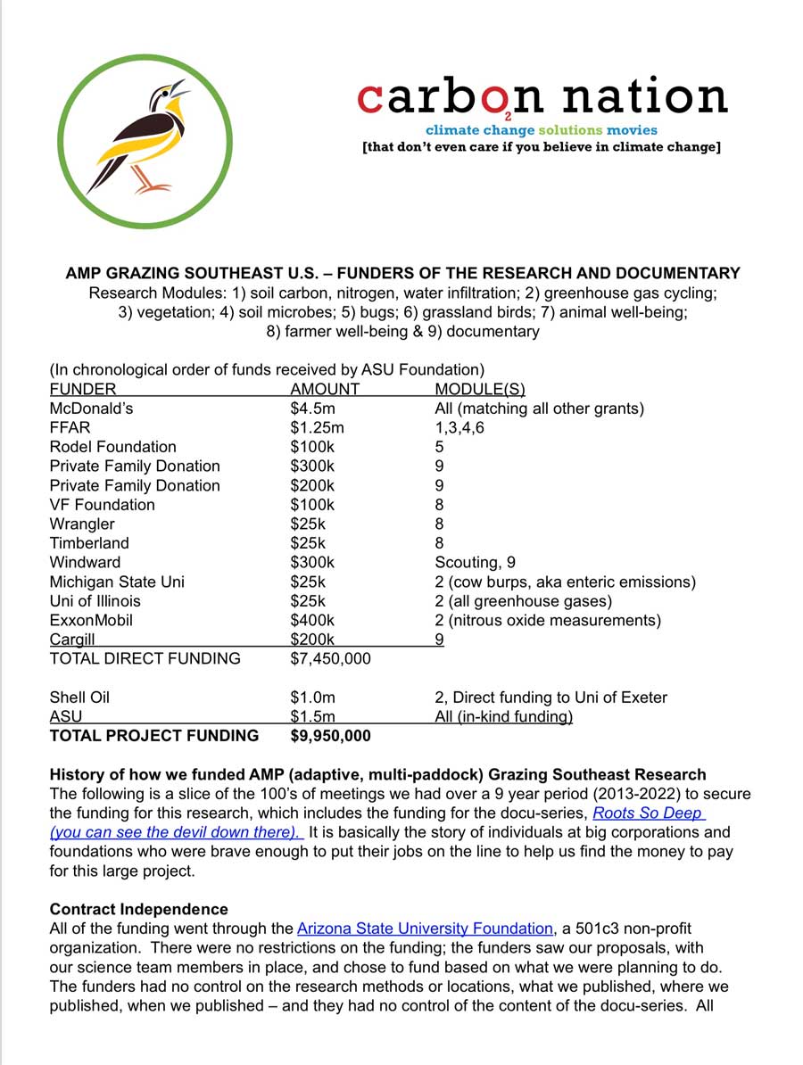 amp grazing southeast u.s. – funders of the research and documentary